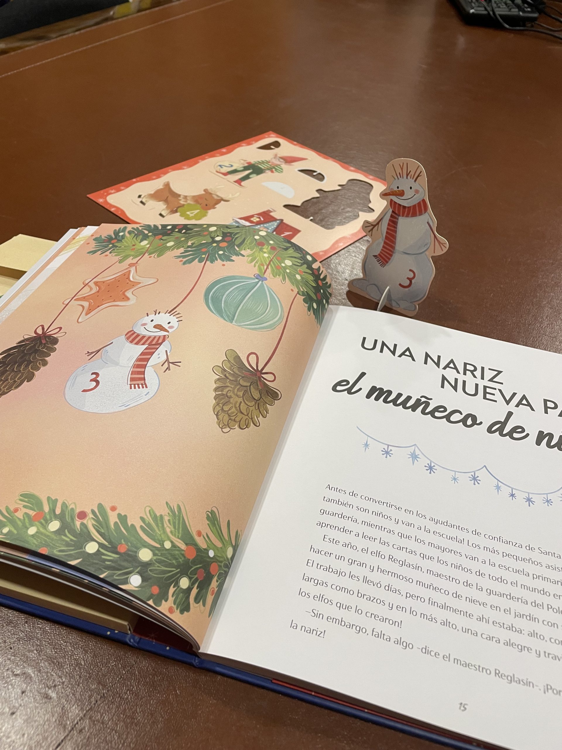 Este adorable calendario de Adviento incluye un libro ilustrado con 24 historias originales. Cada día, los niños pueden embarcarse en una nueva aventura en la aldea de Santa Claus, desde la historia del elfo fabricante de juguetes hasta la del encantador elfo pastelero que salva la Navidad. Junto a estas maravillosas narraciones, los niños se unirán a los duendecillos y escucharán al cuentacuentos del pueblo relatar cuentos clásicos de Navidad, como «El Cascanueces».